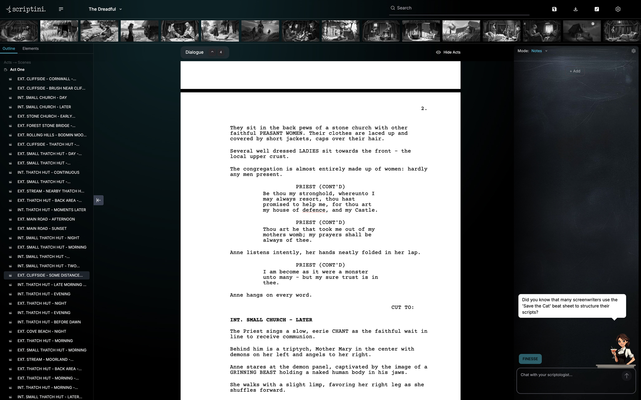 AI writing assistant that understands screenplay structure, character arcs, and dialogue.